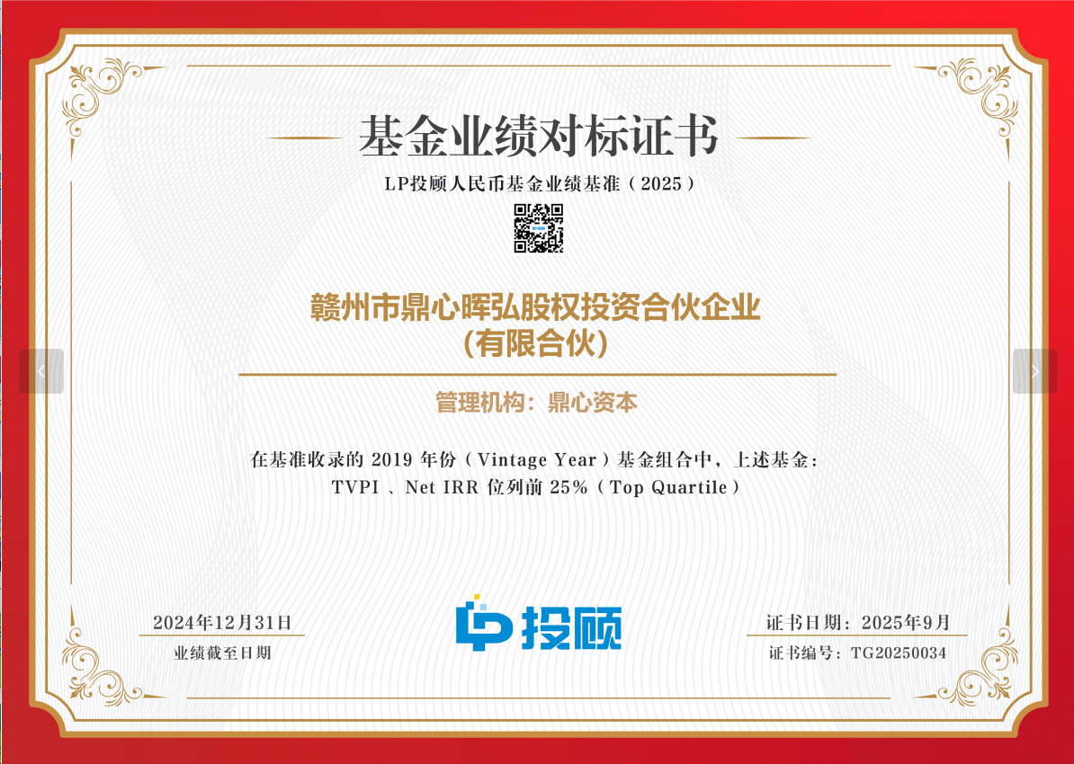 鼎心资本主导投资的资产注入项目【供销大集】实现整体上市鼎心资本第一支VC多项目基金成立,规模3亿元 鼎心资本跻身投中“2017年度中国最具成长潜力创业投资机构TOP10”鼎心资本医疗健康方向被投企业【昕健医疗】跻身融资中国2017-2018年度中国医疗健康产业十佳投资案例鼎心资本医疗健康方向被投企业【博辉瑞进】跻身清科2018中国最具投资价值企业50强鼎心资本参与的中概股私有化项目【乐逗游戏-创梦天地】在香港成功上市 鼎心资本跻身投中“2019年度中国最佳创业投资机构TOP100”鼎心资本荣膺深圳市私募基金协会评选的“2019年度最佳VC基金管理人”鼎心资本跻身投中“2020年度粤港澳大湾区最佳创业投资机构Top30” 鼎心资本跻身CHC医疗咨询与中信证券评选的“2021年度医疗健康最佳投资机构 TOP 30”鼎心资本跻身投中榜“2021年度中国最佳早期创业投资机构TOP 50”鼎心资本获评融资中国“2021-2022年度中国集成电路与半导体最佳早期投资机构”鼎心资本继续入选2022年保险资金投资的私募股权投资基金管理人评价A类名单 鼎心资本跻身中国风险投资研究院“2023年度中国影响力早期投资机构TOP30”榜单鼎心资本跻身投中榜“2023年度粤港澳大湾区最佳早期创业投资机构Top10"榜单